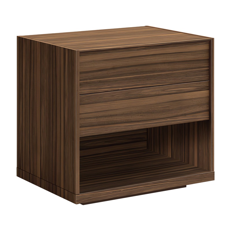 The Mobican Mimosa Night Table invites you to create a relaxing modern oasis in the bedroom. The Mimosa is made in Canada from oak or walnut with book matched veneers, featuring two drawers mounted on high-end push to open slides. This piece is uniquely cr