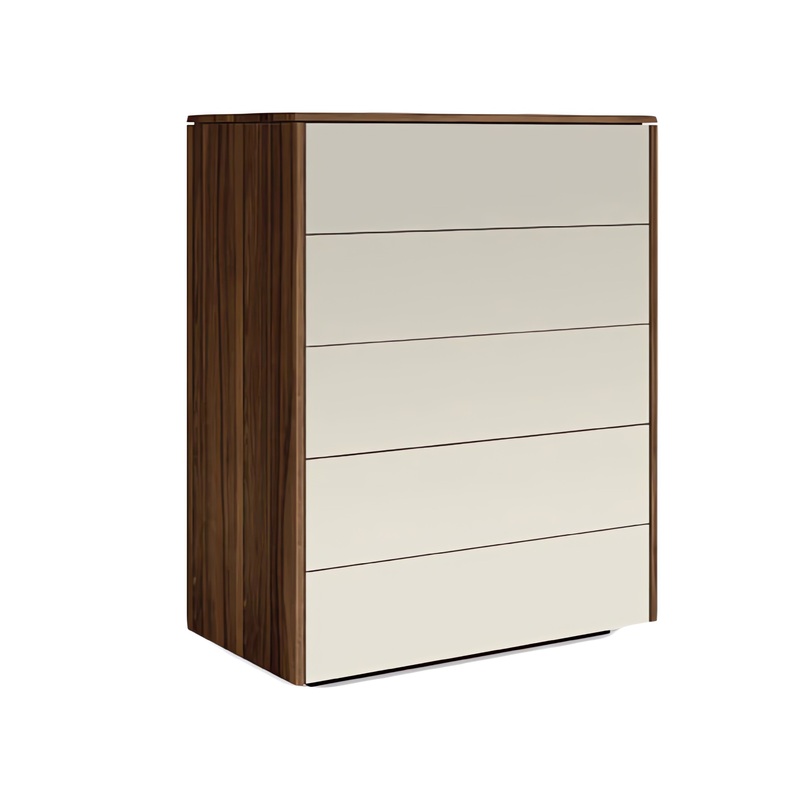 The Mya is constructed from oak or walnut with handcrafted veneers. This chest is available with optional finished back. The Mya High Chest’s customizable minimalist style and ample storage make this piece a fine addition to any modern bedroom.