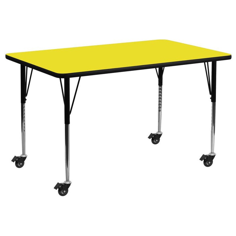 Mobile 24”W x 60”L Yellow HP Activity Table – Standard Height Adjustable Legs – Contemporary – Dining Sets – by Bison Commerce