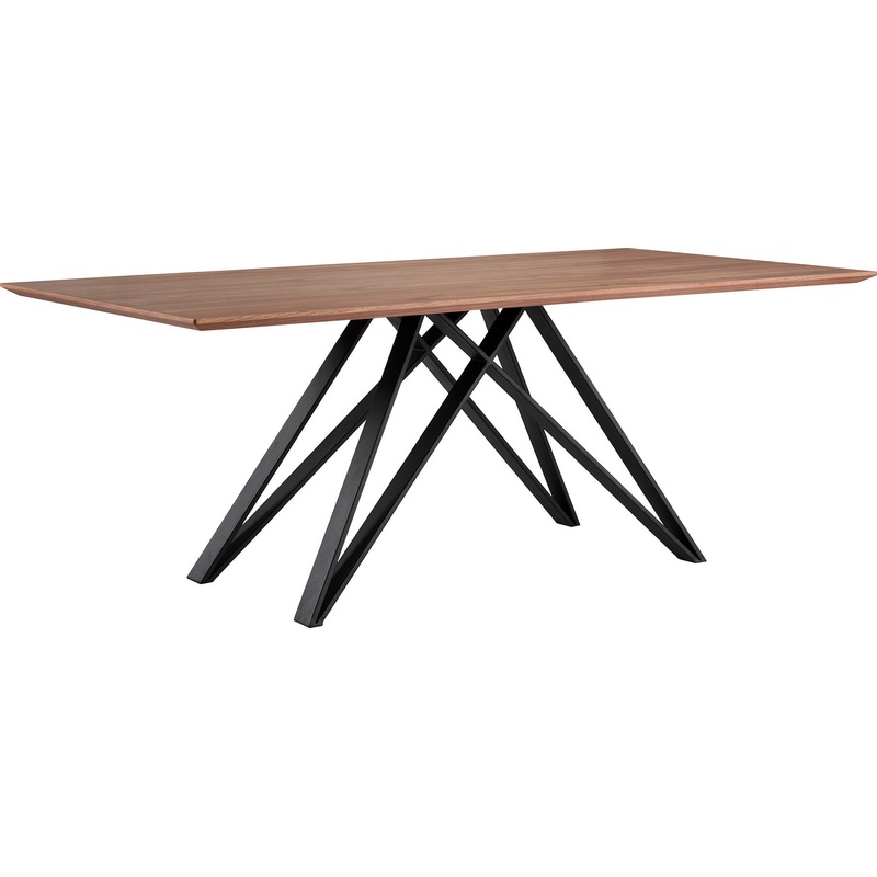 -Modena Modern Dining Table in Matte Black Metal Finish, Walnut Wood Top