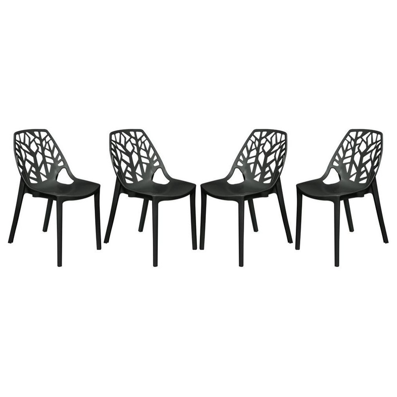 This chair is very light yet sturdy. This Cornelia Plastic Dining Chair lends a modern touch with a woodsy feeling to your home. The intricate cut-out design conjures an image of a small grove of trees to your space. It is ideal around a minimalist dining