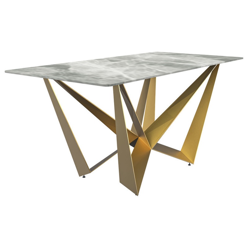 Discover the epitome of modern dining with the Nuvor Dining Table. Meticulously designed to marry the timeless allure of mid-century aesthetics with contemporary functionality, the Nuvor dining table stands as a stunning testament to the artistry of leisure. The Nuvor dining table is crowned with a generously sized rectangular top, providing an expansive canvas for your culinary adventures and social gatherings. Fixed legs offer unwavering support, anchoring the table with a sense of permanence and ensuring a stable foundation for shared meals and cherished moments. Elevating the dining experience, the dining table features a tabletop crafted from sintered stone a cutting-edge material renowned for its durability, resistance to scratches, and easy maintenance. The dining table is supported by a robust steel base featuring sleek, rectangular legs. The golden hue of the steel base adds a touch of opulence and sophistication to the overall design. The steel base is adorned with a meticulously applied powder-coated finish. This finish serves a dual purpose that enhances the visual allure of the golden steel while providing a protective layer against wear and corrosion. Whether hosting an intimate family dinner or a festive gathering, the spacious layout of the dining table ensures that everyone enjoys a seat at the table without compromising on comfort. Accompanied by clear and comprehensive instructions, all the necessary hardware is thoughtfully included to ensure a seamless assembly experience.