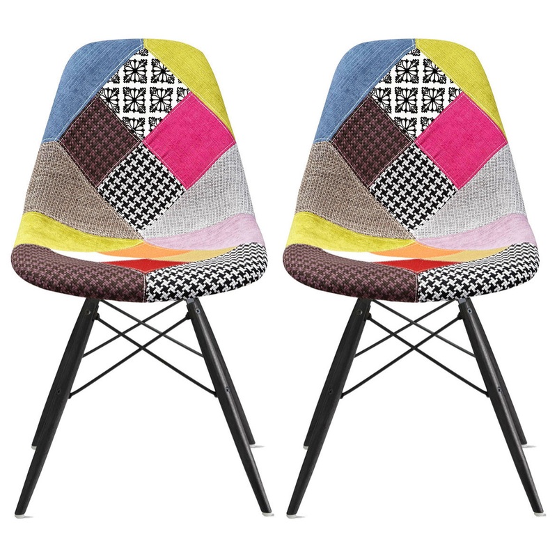 -2 Side Chairs / Accent Seats - Black Wood Legs - High Quality Dining Room Chair. -Heavy-duty molded contemporary upholstered fabric seat. -Straight wooden dowel legs w/ black floor protectors.Ergonomically shaped & comfortable curved seating. Great for bo