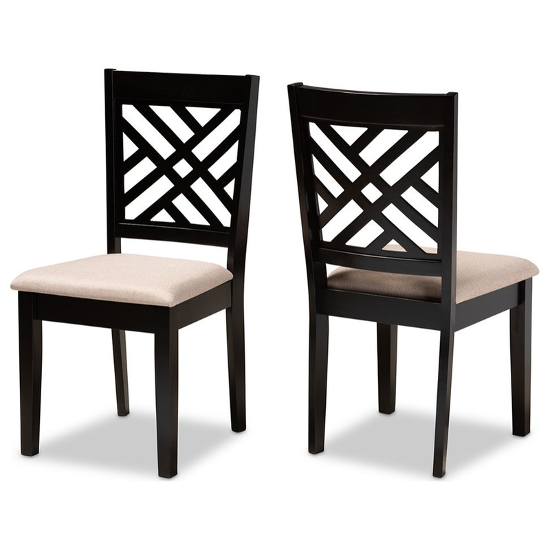 Modern Sand Fabric Upholstered Espresso Brown Wood 2-Piece Dining Chair Set – Transitional – Dining Chairs – by Imtinanz, LLC