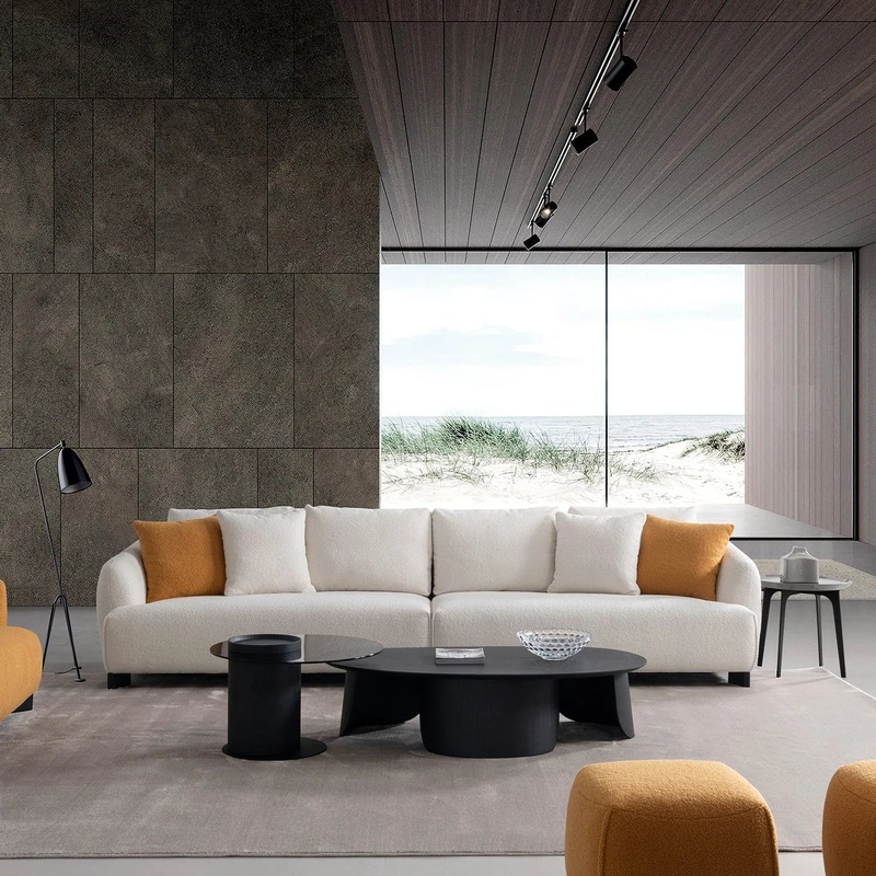 Experience the ultimate in comfort and style with the Minimalist Sherpa Fabric 5-Seater Sofa in SAFFRON. This luxurious sofa features an elegant and classic design, solid pine wood legs, and a versatile, sophisticated colour that enhances any space with its superior comfort and timeless aesthetic appeal.