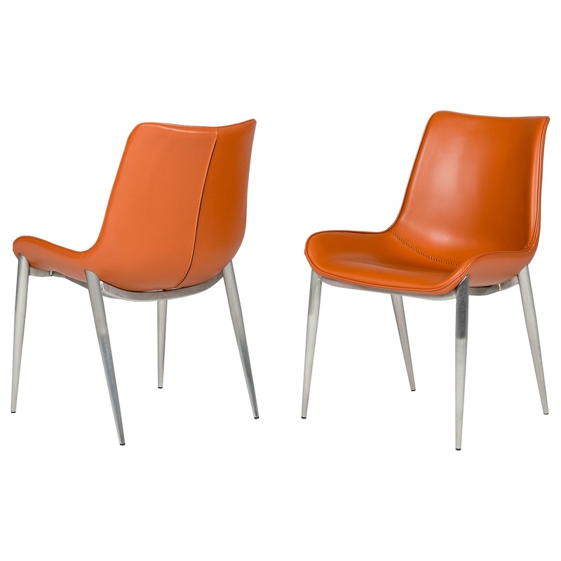 The Holt Dining chair is the perfect piece for your industrial dining area. This contemporary chair has a cognac eco leather upholstery. The foam filled seat offers comfort and support. Brushed stainless steel legs add luxury and charm to this versatile ch