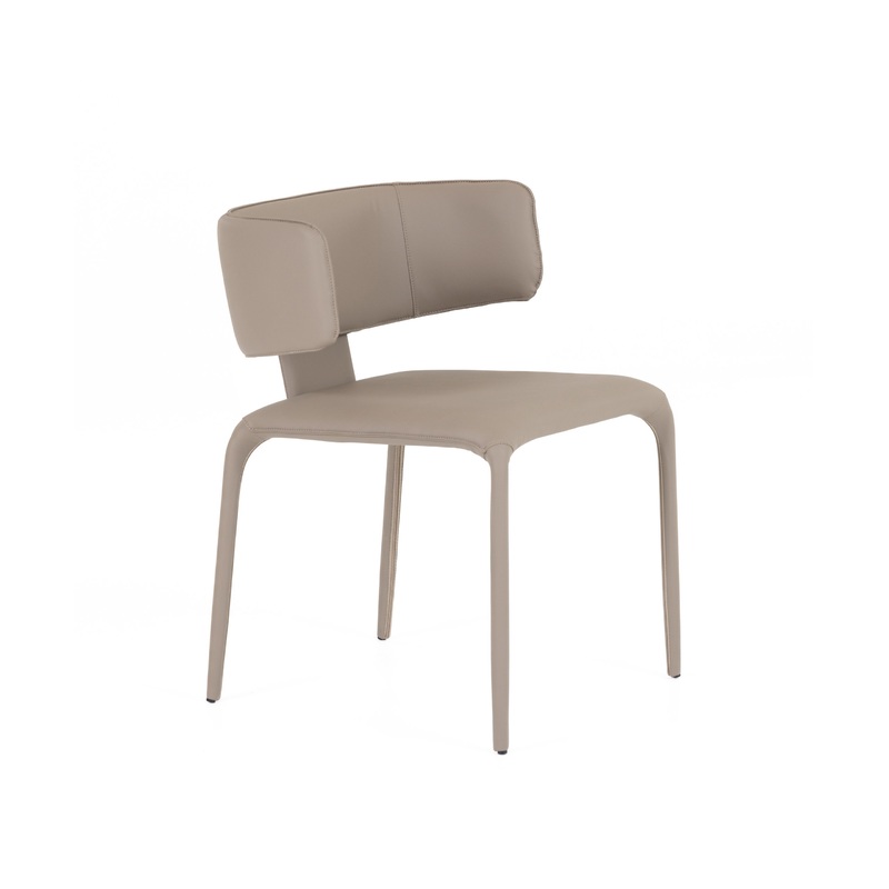 The Modrest Odessa Modern GreyVegan Leather Dining Chair is a stylish addition to any dining space. This fully upholstered side chair features a vegan leather covering in a warm grey color. Its wingback design adds a touch of elegance, while the metal frame ensures durability. Additionally, these chairs are stackable, making them convenient for storage when not in use. Perfect for both comfort and aesthetics, these chairs elevate your dining experience.