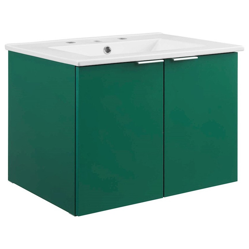 -Modern Bathroom VanityWall-Mount DesignCeramic Sink BasinMelamine ConstructionDual Soft-Close DoorsL-Shaped Metal PullsAssembly RequiredOverall Product Dimensions: 18.5″L x 24.5″W x 24″HOverall Bathroom Sink Dimensions: 18.5″L x 24.5″W x 6.5″HOverall VANITY Dimensions: 17.5″L x 17″W x 23″H