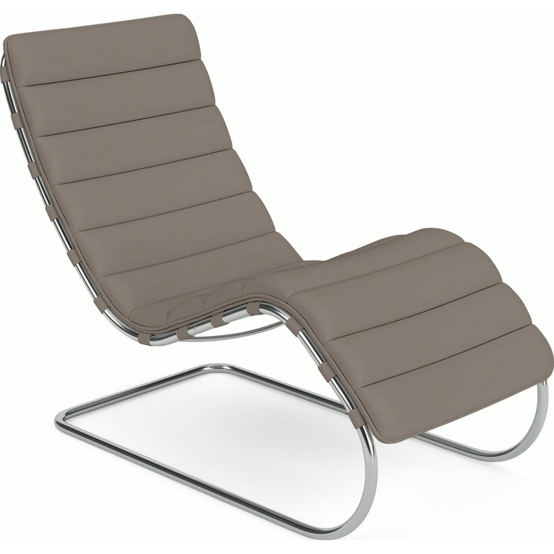 Ludwig Mies van der Rohes iconic MR Collection began in 1927 with two chairs submitted to the seminal Weissenhof exhibit in Stuttgart, Germany. Over the next five years he continued to add to the collection, including the MR Chaise. Beautifully designed with a tubular steel frame that mimics the curves of the human body, this cantilevered seat makes you feel like youre floating. Still made to Mies exact specifications, this chaise is perfectly balanced, and features the material innovation and lack of ornamentation that epitomize the International Style.