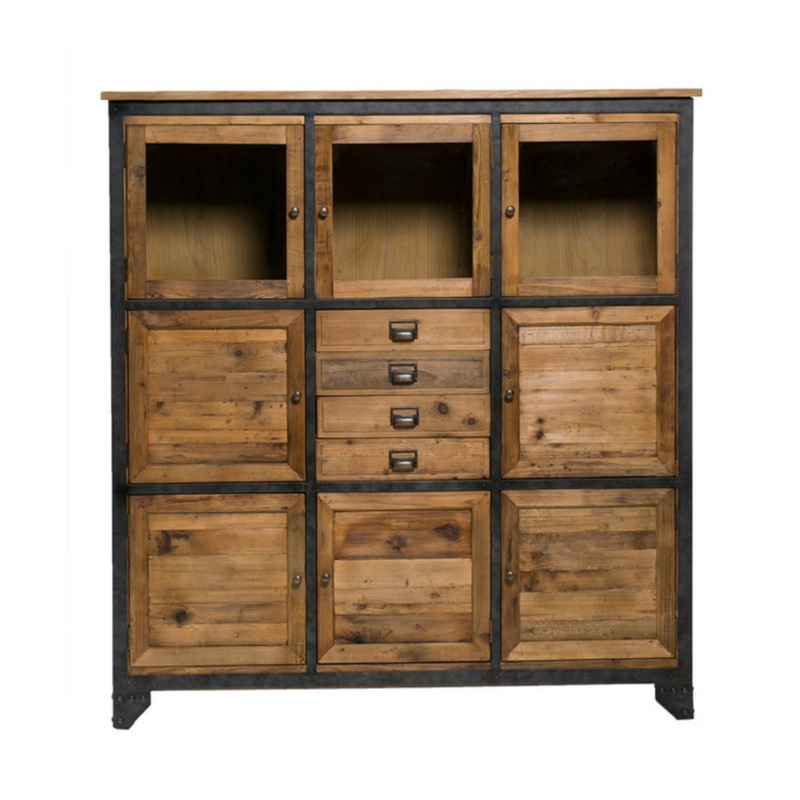 A 160x45x171 cm-es Mys kabinet rengeteg lehetsget knl, hiszen zrt ajts, veg ajts, s fikos rszekkel is rendelkezik. Ipari s rusztikus megjelense a fekete fm keretnek, valamint a klnbz rnyalat natr feny lapoknak ksznhet.