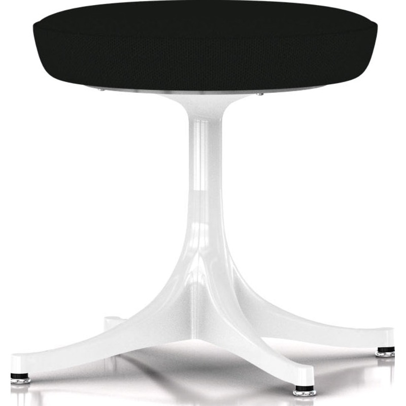 George Nelsons Pedestal Stool (1954) fits well in casual spaces that require easy-to-rearrange seating. It features the designers signature clean lines and elegant simplicity and an upholstered seat pad that echoes Nelsons iconic Marshmallow Sofa. Eco-friendly as it is sightly, its polyester upholstery is devoid of antimony, a known industrial pollutant. Self-leveling glides adjust to uneven floor surfaces. This is the authentic Nelson Pedestal Stool produced by Herman Miller.