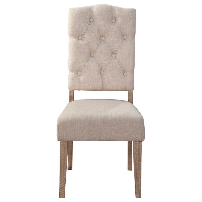 The neutral gray tones of the Newberry Parson Dining Side Chair contrasts the earthy tones while the Weathered wood legs tie the entire dining set together. The perfectly curved back with button-tuft details makes a statement and provides comfort. Using su