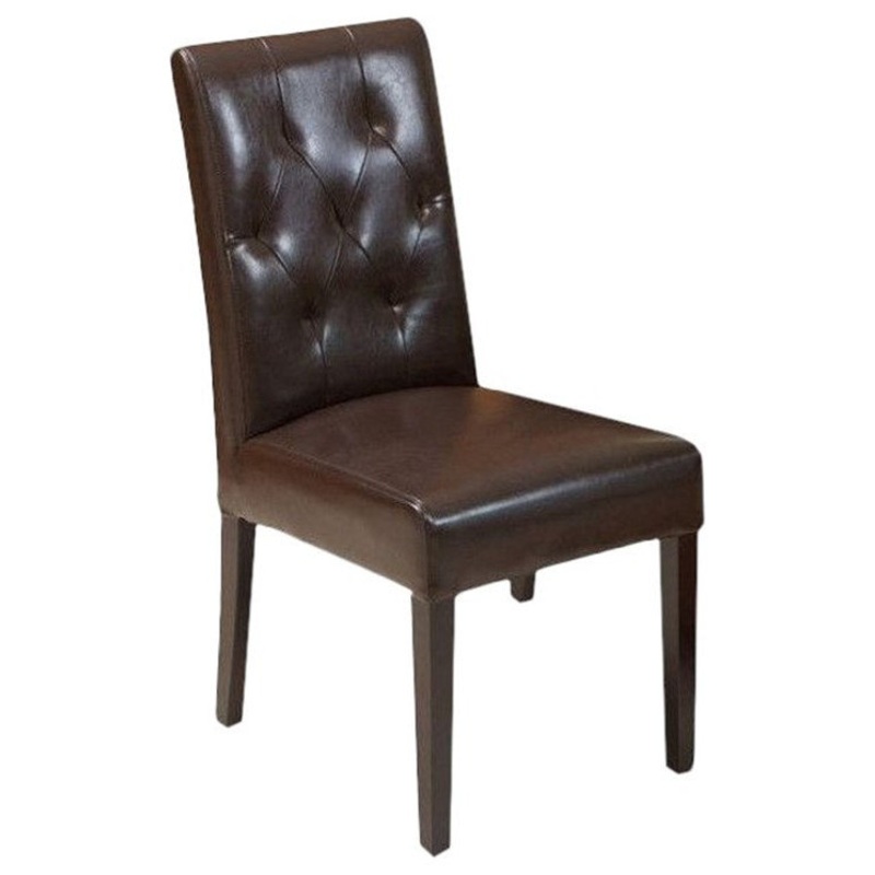 The Rockwell Dining Chairs are stylish and elegant enough to use in the most upscale dining room and yet comfortable enough to use as extra seating even in a living room. Features: -Color: brown -Made of supple bonded leather and wood -Sturdy wood frame -D