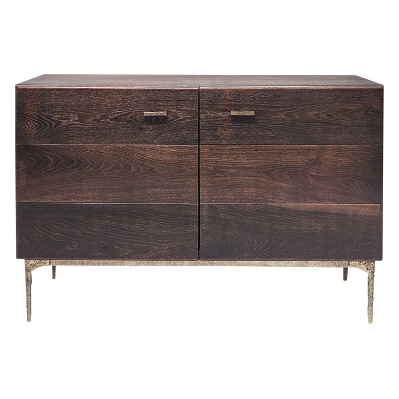 The Kulu Sideboard by Nuevo is a stylish contemporary piece which fuses rustic and urban aesthetics to striking effect, making the Kulu at home in any space. The Kulu is inspired by the striking metalwork of Alberto Giacometti, featuring textured legs hand