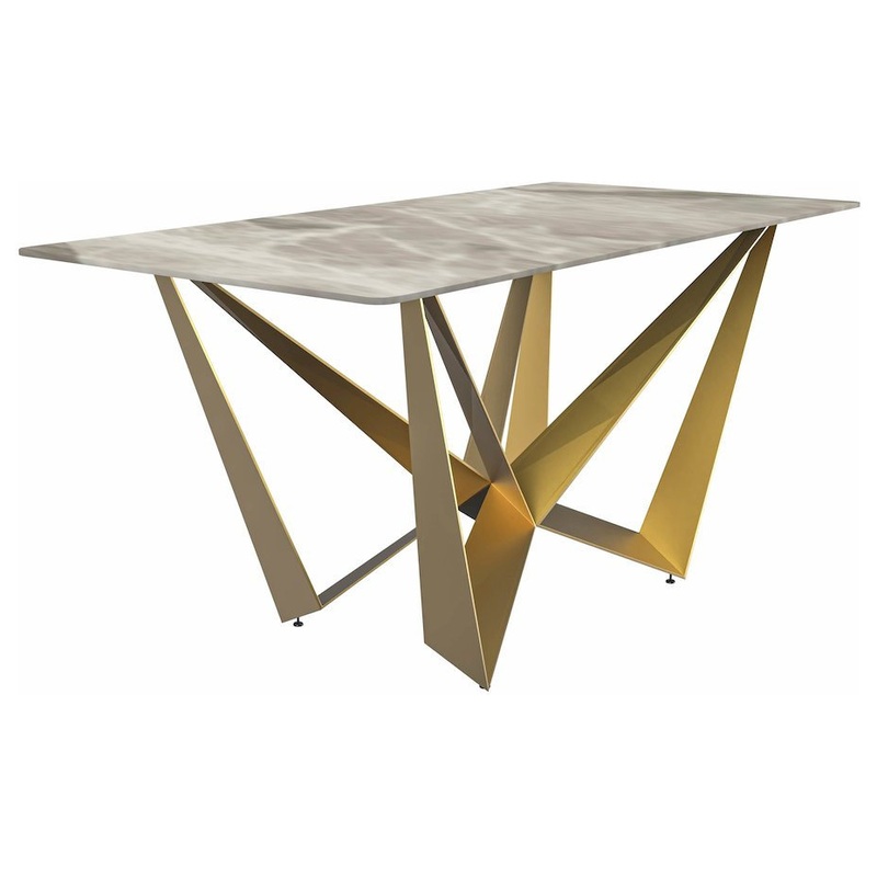 Nuvor Series Modern Dining Table Gold Base, With 71 Deep Grey Sintered Stone Top – Modern – Dining Tables – by Bison Commerce