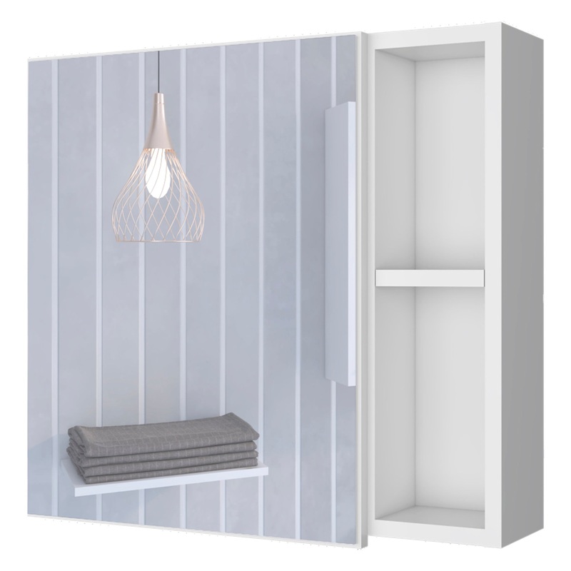 Oman Medicine Cabinet -Bathroom -WhiteThe TUHOME Oman Medicine Cabinet is perfect for adding extra storage to any room in your home. It’s stylish and functional, making it the ideal choice for anyone looking for extra storage space.With a ample size (19,6”W X 5,5”D X 18,6”H) fits perfect in any bathroom.If you’re one of the people that wants comfort and style, this is the perfect solution.With a mirror in the cabinet (13,7”W X 18”H), two external shelves (4,1”W X 7,9”h X 8,4”H) and a ample Superior Top (20,4”) ideal for your space.Made of resistant white manufactured wood.