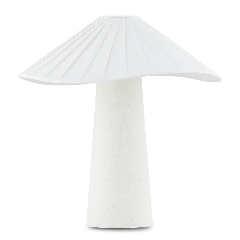 Chanterelle’s pleated natural linen shade feels soft and fresh and the undulating edge adds sophistication and movement. The tapered base is also wrapped in natural linen, creating an allover linen materiality and clean monochromatic palette that makes this modern organic table lamp feel right on trend.