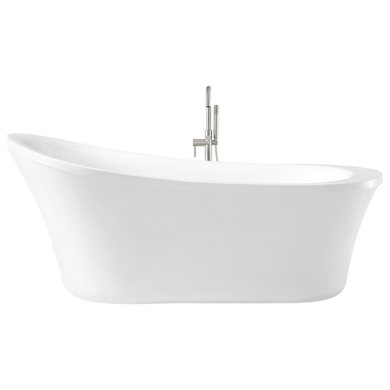 Sink and soak in ultimate comfort with the Rachel reversible slipper bathtub from OVE Decors. This gorgeous, glossy white acrylic freestanding bathtub features clean lines, a curvy silhouette and a hollow interior, adding an impressive sense of dimension and depth. Its lightweight but sturdy construction is very easy to clean and is reinforced with fiberglass to ensure a durable finish that will not stain or fade. This tub also comes equipped with leveling legs for floor stability, plus a center drain and overflow for simple, do-it-yourself installation. What’s more, it’s paired with a stylish freestanding faucet and showerhand for added convenience. Your ultimate soaking experience awaits you.