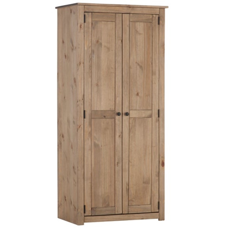 A rustic double wardrobe crafted from solid pine with a natural oak wax finish and subtle groove details.Keep your clothes clean and tidy in the Panama 2 Door Wardrobe. Crafted from solid pine with a natural oak wax finish, this wardrobe will add a touch o