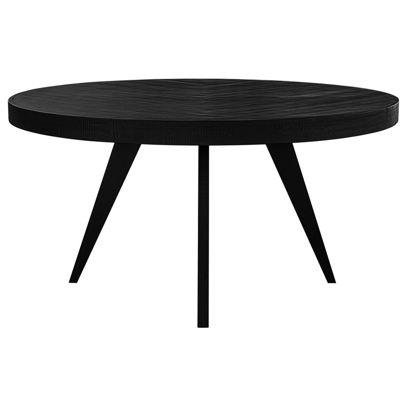 Striking and bold, Parqs natural beauty and rustic style add visual intrigue to even the most coziest dining spaces. Blackened solid acacia gives a deep sense of drama, while the 60 inch rounded top floats over angled legs. Comfortably seating four, Parq is the perfect dining table for intimate interiors. Parq 60 Inch Round Dining Table Features: