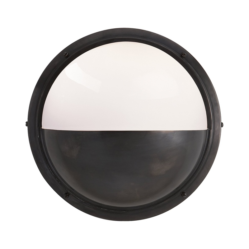A refined take on classic Art Deco design, the Pelham Moon Light by Visual Comfort brings quiet sophistication to any interior. Featuring a crisp opal glass dome set against a gleaming metal band, this flush-mount sconce casts a warm, ambient glowperfect f