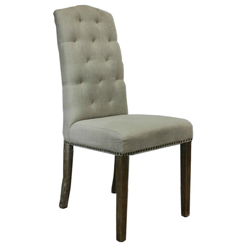 -Dining chair with details in the backrest and the seat and with high back for a stylish look -Solid wood construction -Fabric upholstered Dining Chair -Brings to your dining room a touch of luxury. -Beige color -Dimensions: 18 x 19 x 40 in -Weight 18 lbMo
