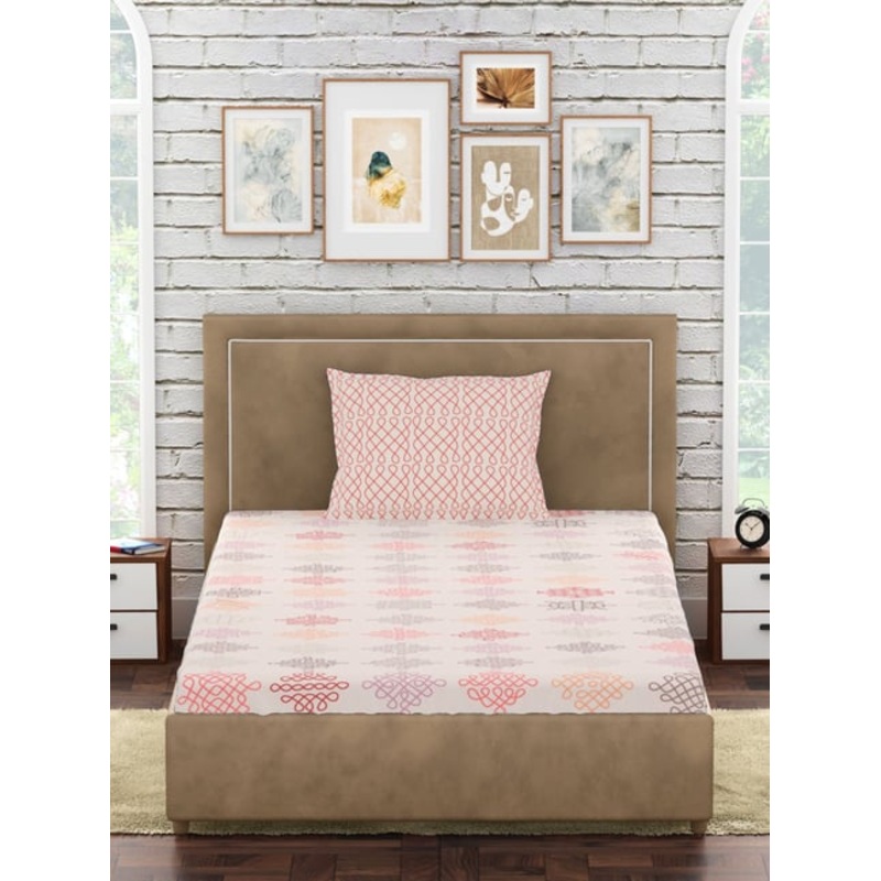Petal Home Vellore Floral White 300 TC Cotton Single Bed Sheet with 1 Pillow Cover