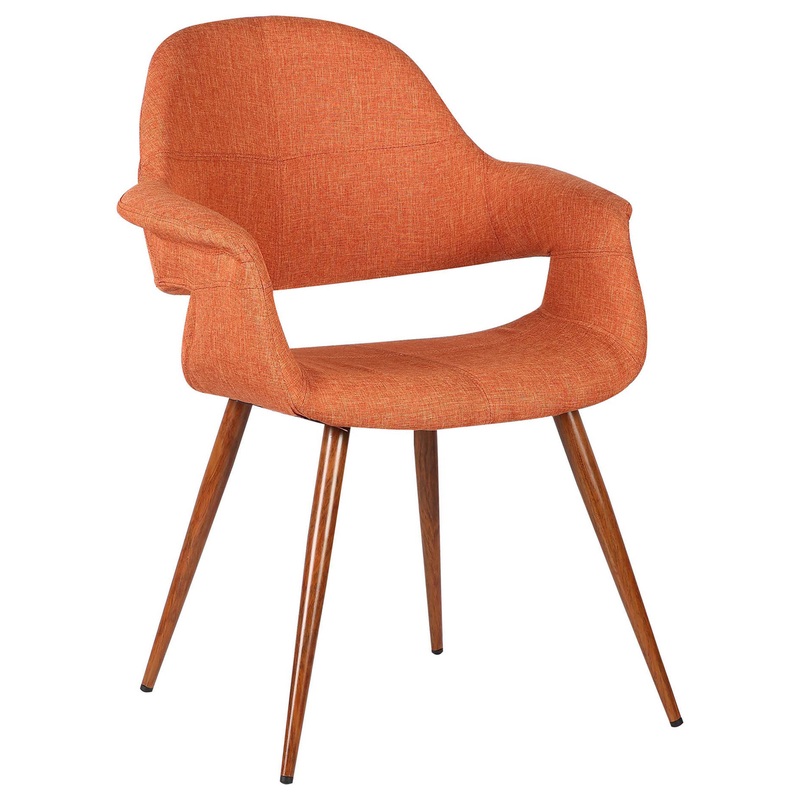 The Armen Living Phoebe contemporary armchair is a well-proportioned, unassuming, and yet simply elegant addition to your modern dwelling. Add some color to your home with this bold and stylish mid-century designed dining chair. Upholstered in textured fabric over a hardwood frame and complete with a generously cushioned seat and back, the Phoebe is the epiphany of comfort and style. This brilliant chair also features padded armrests for further relaxation. Its walnut wood finished metal legs further enhance its mid-century appeal while assuring durability. The curved wood medium high back is ideal for posture alignment and an unmatched support for days on end. The high-density cushion foam is deal for all day comfort in any space in your home. The foundation of the product is supported by solid walnut wood for a chic and stylish aesthetic without comprising practicality and functionality of this item. The vibrate orange color is compliment by walnut wood legs for bold look. This product ships in one box with easy and quick set up. We stand by the quality, the craftsmanship and the integrity of our product by offer 1-year warranty for all our products. We want our customers enjoy our product and we will always be there to help with our top-notch customer service support. Excellent choice for a Modern, Contemporary, and Mid-Century Dining and Kitchen setting. The Phoebe barstool will add a touch of distinction and elegance to your home bar or dining room with its ultra-modern design, clean lines and stylish shapes. The Phoebe is available in Gray, Green and Orange Fabric upholstery. Product Dimensions: 25″W x 24″D x 33″H SH: 18″