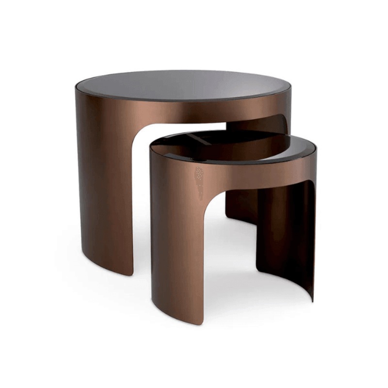 Nveld a relaxcis tered knyelmt a kt darabos Piemonte veg lerakasztal szettel. A kt egymsba illeszthet asztal retro megjelensk s elegns veik miatt tkletesen kiegsztik egymst. A ferde fekete vegasztallap s a csiszolt rz alap elegns kiegsztse lesz nappalid de