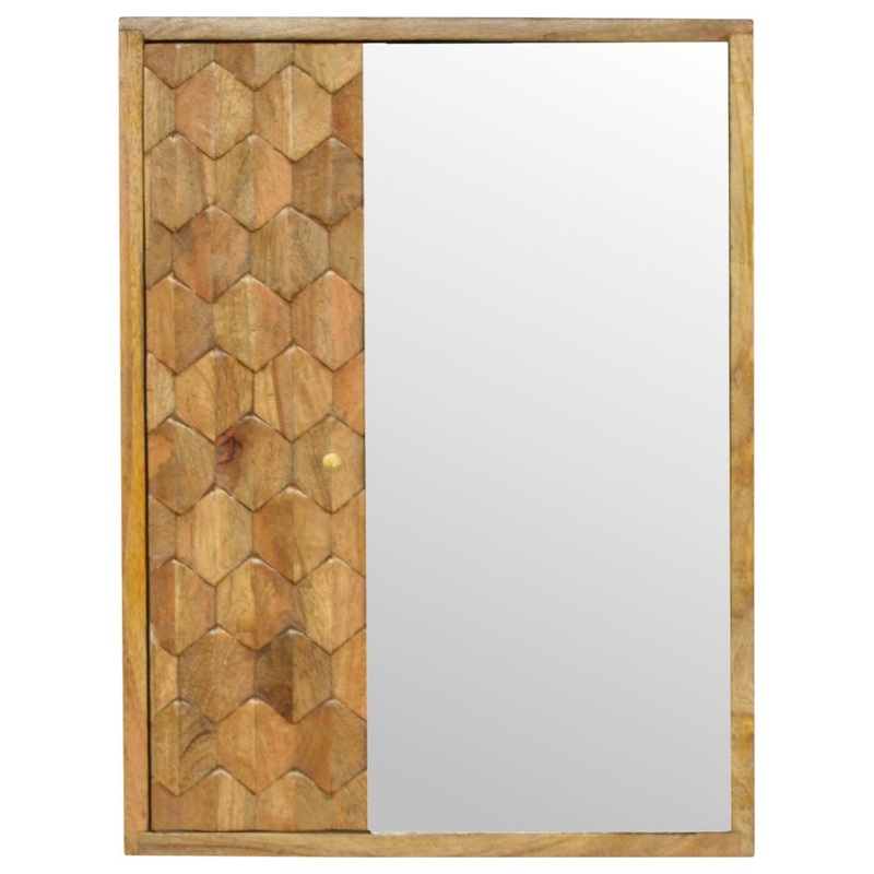 Complete your range with the mirror cabinet constructed from 100% solid mango wood in an Oak ish finish, with a pineapple carving on the front along with a sliding mirror. It features a few shelves inside for discreetly storing any bits and pieces in the b