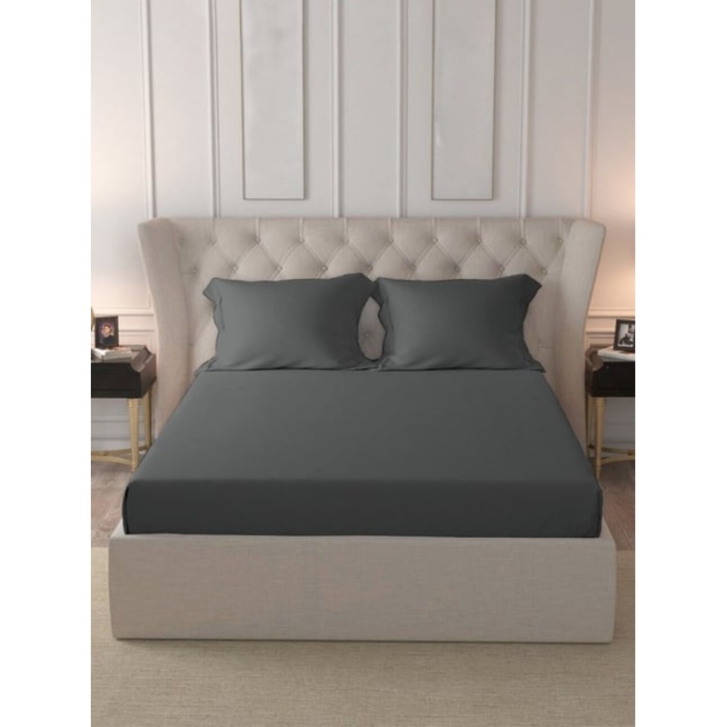 Pizuna Dark Grey 400 TC Cotton King Fitted Bed Sheet with 2 Pillow Covers