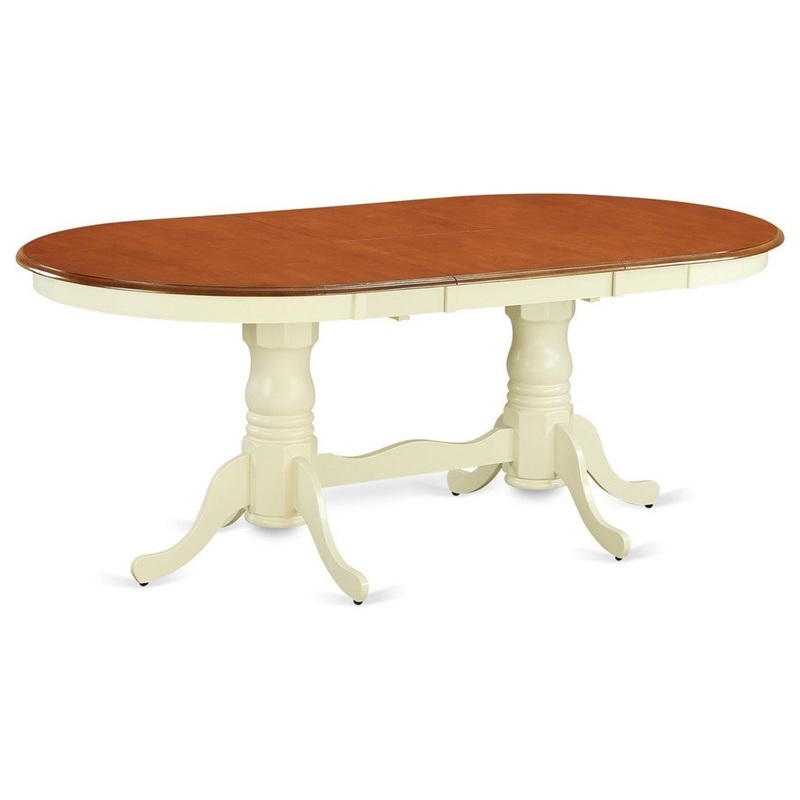 The small kitchen table with built-in self storage butterfly leaf which fits 4 to 8 persons. Dazzling solid wood table top with well-built carved pedestal support. Beveled oval shape to make welcoming kitchen space ambiance and finished in rich Buttermilk & Cherry, the small kitchen table can be acquired with hardwood or padded seat chairs. In-built self storage butterfly leaf can be folded subtly underneath the tabletop when not being used and provides the greatest in flexibility for individuals who enjoy to set up modest, passionate dinners as well as full-out family affairs