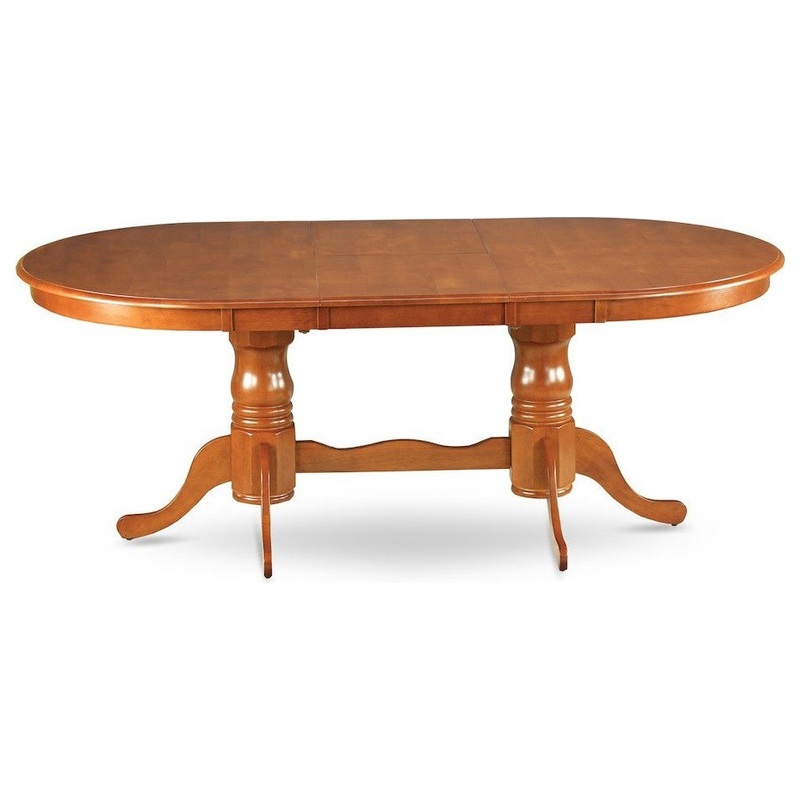 The dining room table with built-in self storage butterfly leaf which fits 4 to 8 persons. Dazzling hardwood table top with well-built carved pedestal support. Beveled oval shape to make welcoming kitchen space ambiance and finished in rich Saddle Brown, the dining room table can be acquired with hardwood or padded seat chairs. In-built self storage butterfly leaf can be folded subtly underneath the tabletop when not being used and provides the greatest in flexibility for individuals who enjoy to set up modest, passionate dinners as well as full-out family affairs