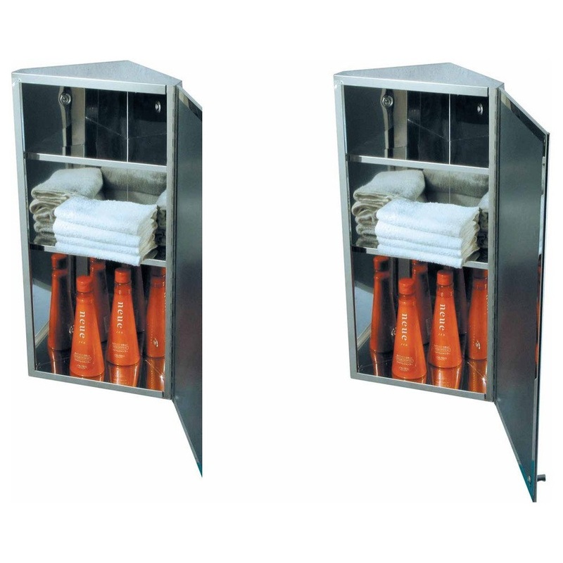 Item 23520 INFINITY CORNER WALL MOUNT MEDICINE CABINET FOR BATHROOM This elegant corner medicine cabinet door opens up to three interior shelves. It is manufactured out of 100% superior stainless steel material. It can be mounted on any corner wall - Opens