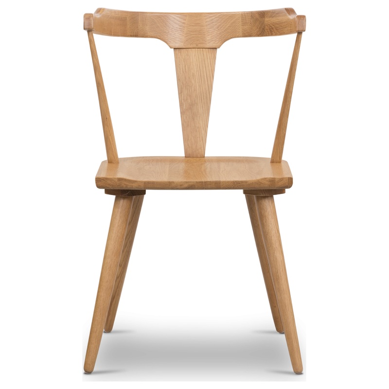 Donning a sleek black hue and a low profile, our Enzo Dining Chair aims to please. With solid oak wood construction, you know this chair will be around year after year, and black never goes out of style. We chose a mid-century modern-esque splat back for its timeless attributes, and the tapered legs can do no wrong. Pair this chair with a natural wood table for a look that’s fresh.