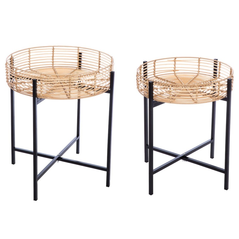 A Poly lerakasztal szett kt darabbl ll, egy kisebb s egy nagyobb asztalkbl. Szerkezete fmbl kszlt, mrattanbl font, peremmel elltott asztallappal igazn lgies s termszetes hatst kelt. Szerkezete knny, gy egyszeren mozgathat. Asztallapja vilgos szn mrattanbl