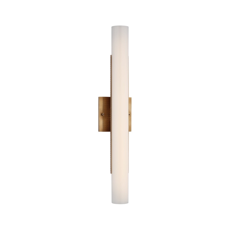 Part of Kelly Wearstlers acclaimed Precision series for Visual Comfort, this 21″ vertical bath light is a study in architectural balance. Defined by its bold silhouette and perforated metal accents, the fixture captures a dynamic interplay between light and form. A slender opal glass diffuser delivers soft illumination, while the precision-cut metalwork introduces refined texture and sculptural presence.