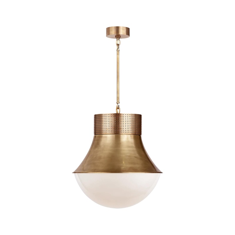 The Precision Large Pendantcurates an exciting yet sophisticated look and feel to any room. Thisfixture makes for astrikingstatement piece, adding a soft glow in the space as light diffuses through the white glass and perforated metal. This design works perfectly over a kitchen island or dining room table. The Precision Large Pendant is part of theKelly Wearstler collection.