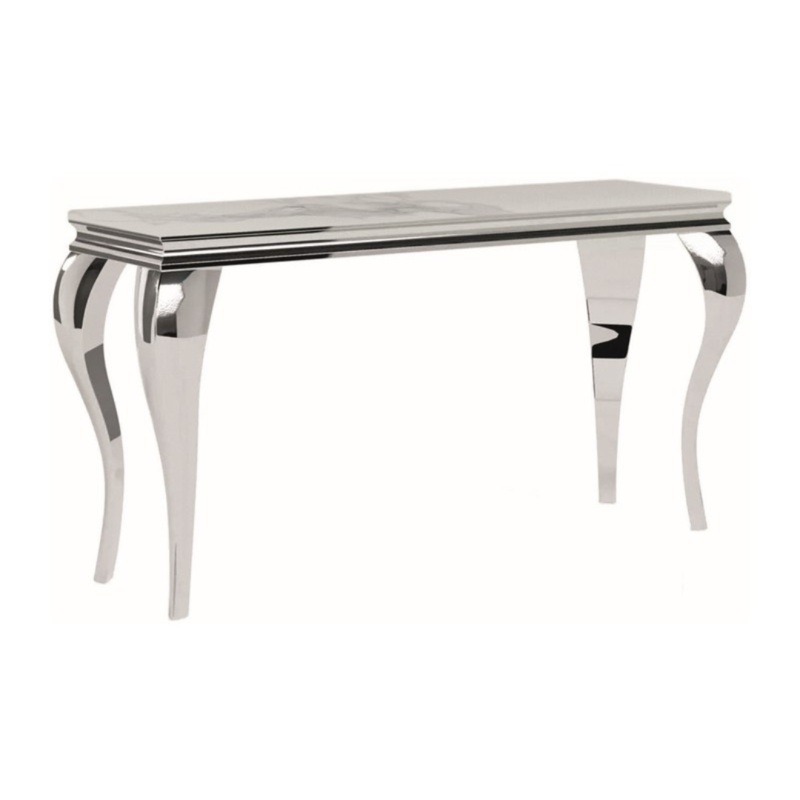 A fehr, mrvny hats kermia lappal rendelkez Prince konzolasztal 120x40x78 cm-es mretvel sokoldal s praktikus hasznlatot nyjt. Fnyes krm szn, elegns kialakts lbai kombinlva az egyedi mintzat asztallappal dekoratv sszhatst keltenek, gy garantltan kiemelkedik