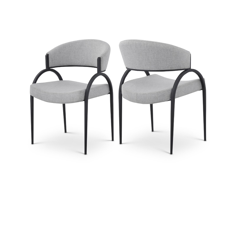Give your dining room a touch of sophistication with this stunning grey Privet dining chair from Meridian Furniture. Its contemporary frame is comprised of iron, plate, foam, and fabric, with a matter black finish. Soft grey linen-like polyester fabric uph