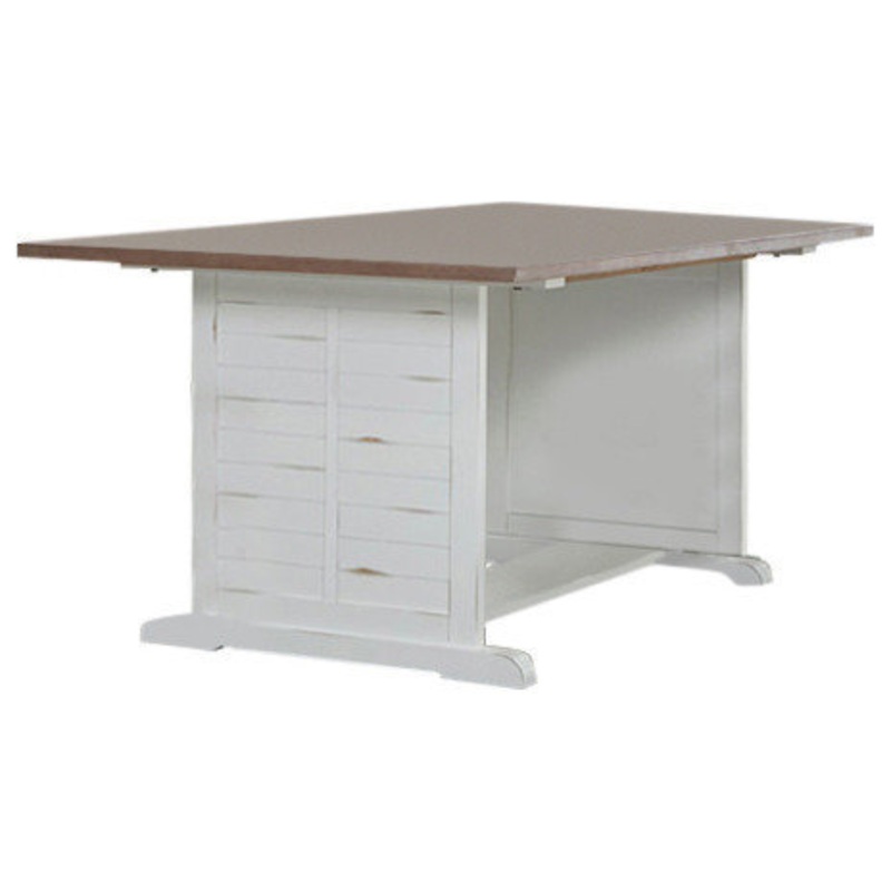 The Trestle Dining table has a great warm light oak top and distressed white trestle base. Features : -Includes table top and base (chairs sold separately) -Oak finished table top -Trestle style table base -Clearance from Floor to Table Top/Apron (inches)