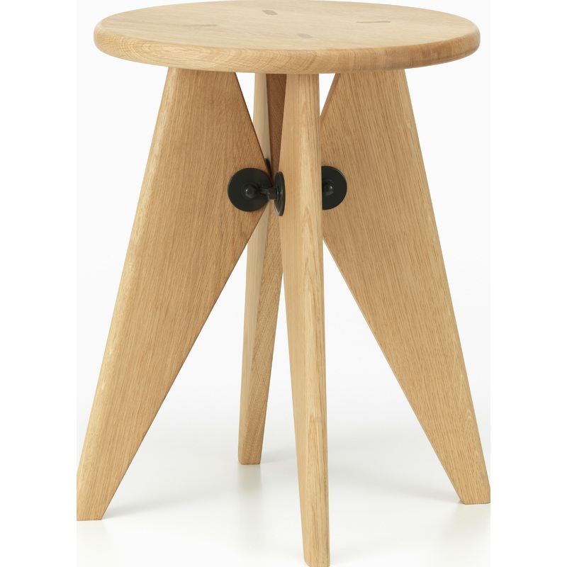 With its mix of angular shapes, crafted hardwood, and industrial fittings, the Tabouret Bois (1941) is a pure expression of French designer-engineer Jean Prouvs functionalist style. Constructed from solid wood, this robust stool with a round, flat top can