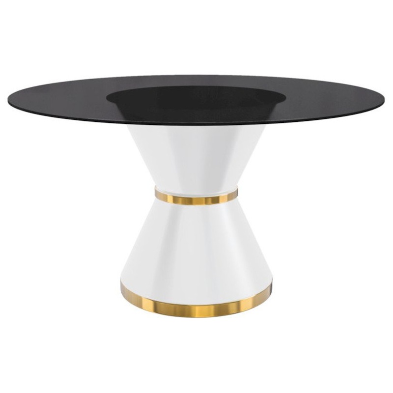 Qorvus Series Round Dining Table WhiteGold Base with 71 Round BLack Glass Top – Contemporary – Dining Tables – by Bison Commerce