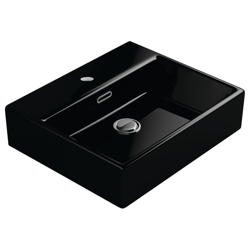Quattro 50.01 BG by WS Bath Collections, 19.5″ L x 16.5″ W x 5.5″ H Bathroom Sink, Wall Mount / Vessel Installation, With Overflow, With One Faucet Hole, in Gloss Black