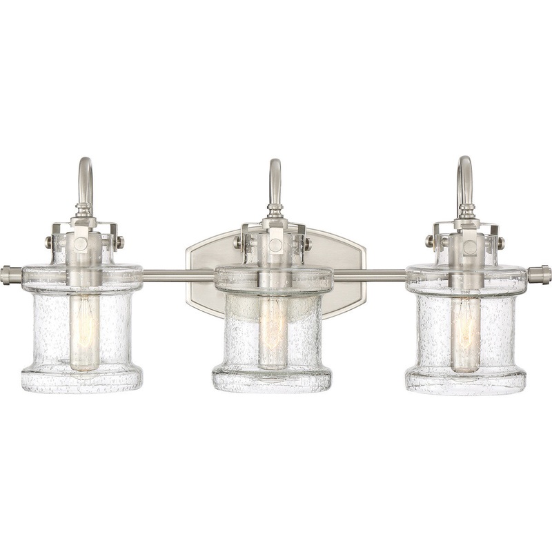 Traditional in design yet transitional in execution the Danbury collection features globes in seedy glass with a unique jar-like silhouette. The decoratively capped center rod supports gooseneck arms that secure the vintage-inspired globes with exposed latches. The versatility of the collection is further defined by its lustrous Polished Chrome Brushed Nickel or Earth Black finish.