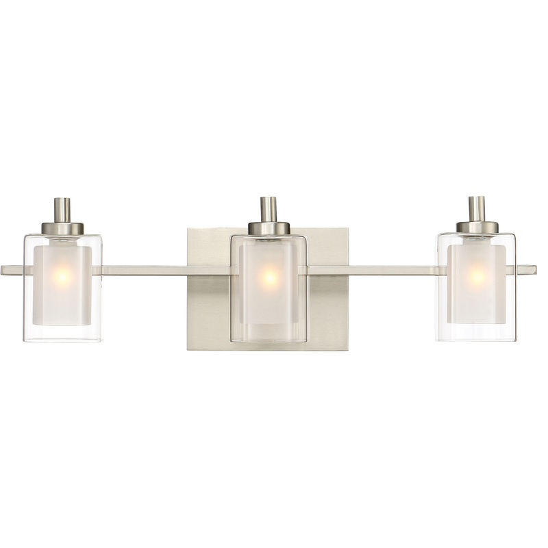 This modern posh collection features a simplistic design with a rich finish. The inner heavy glass is sand-blasted inside and encased within the outer clear glass for a sophisticated and stunning look. Features Comes with clear outer and heavy sand blast inner glass shades Includes (3) 4.5 watt G9 LED bulbs Capable of being dimmed Rated for damp locations Covered under a manufacturer limited warranty. Dimensions Height: 6″ Width: 21″ Extension: 6-1/2″ Product Weight: 4.3 lbs Shade Height: 4-1/4″ Shade Diameter: 3-1/4″ Backplate Height: 6″ Backplate Width: 6-1/2″ Electrical Specifications Bulb Type: LED Bulb Base: G9 Number of Bulbs: 3 Bulbs Included: Yes Watts Per Bulb: 4.5 watts Wattage: 13.5 watts Voltage: 120 volts Color Temperature: 3000K Color Rendering Index: 90CRI Lumens: 400