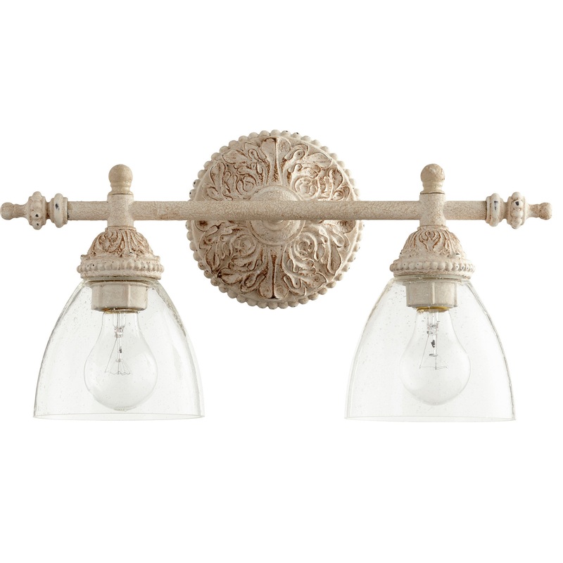 QUORUM 5257-2-70 2-Light Vanity Light, Persian White with Clear Seeded – French Country – Bathroom Vanity Lighting – by Lights Online