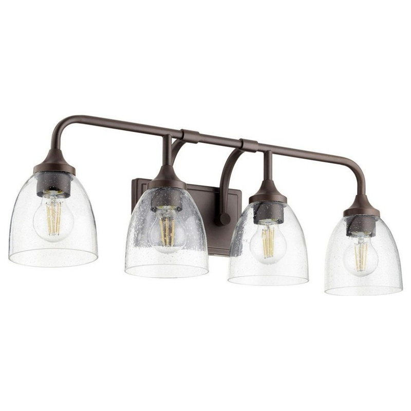 This Enclave Vanity from Quorum has a finish of Oiled Bronze W/ Clear/Seeded and fits in well with any Quorum Home Collection style decor. -ILLUMINATION -Socket Type: Medium -# of bulbs: 4 -Max Wattage: 100 -Bulb(s) Included?: No -STYLE -Finish: Oiled Bron