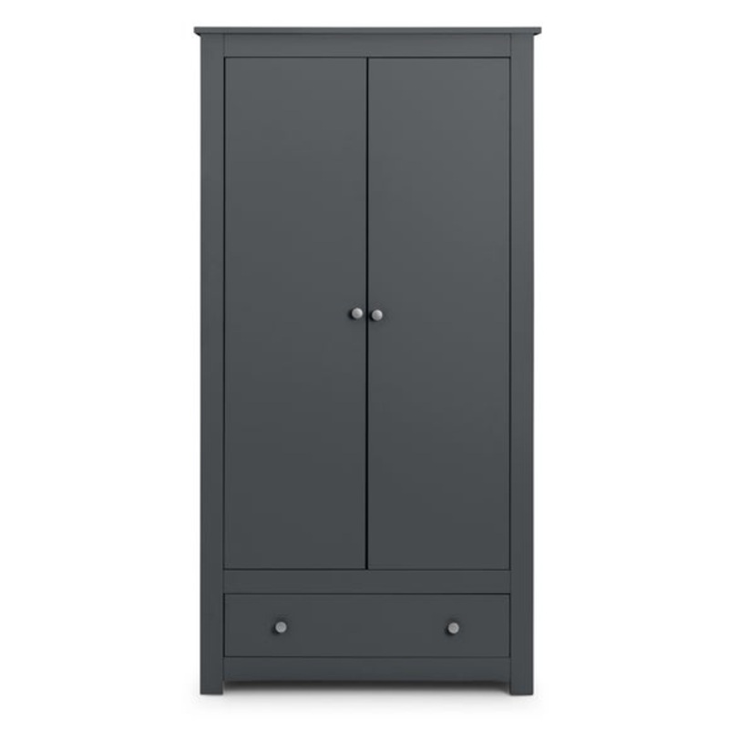 Boasting clean, simple lines the Radley Wardrobe is perfectly suited for both modern or traditional styles. Featuring a spacious drawer and a large hanging space to neatly store your clothes, this wardrobe boasts a dark grey lacquered finish, complete with