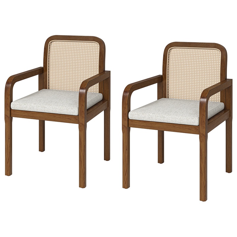 This modern dining chair set of 2 features a meticulously crafted rattan backrest for a natural farmhouse style in your dining space while the wooden rattan surface presents a warm luster over time, accompanying you every day. The rubber wood frame and solid wood legs ensure unwavering stability and durability, guaranteeing years of reliable use. With adjustable feet, this chair set adapts to uneven surfaces, ensuring a wobble-free dining experience. Wrapped in premium linen upholstery, the dining chair set offers a comfortable seating experience. The removable and washable seat cushions are secured with sturdy horn buckles for both convenience and customization, you can take off the seat cushions and sit alone. With the option to remove the seat cushions, you can revel in the chair’s sleek and simple design or enjoy the added comfort as you dine. Upgrade your dining area with the versatile and stylish contemporary dining chairs.